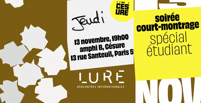 Les Rencontres invitent des étudiant·es tout récemment dipômé·es à présenter leur travail, leur projet de diplôme au format “court-montrage”.